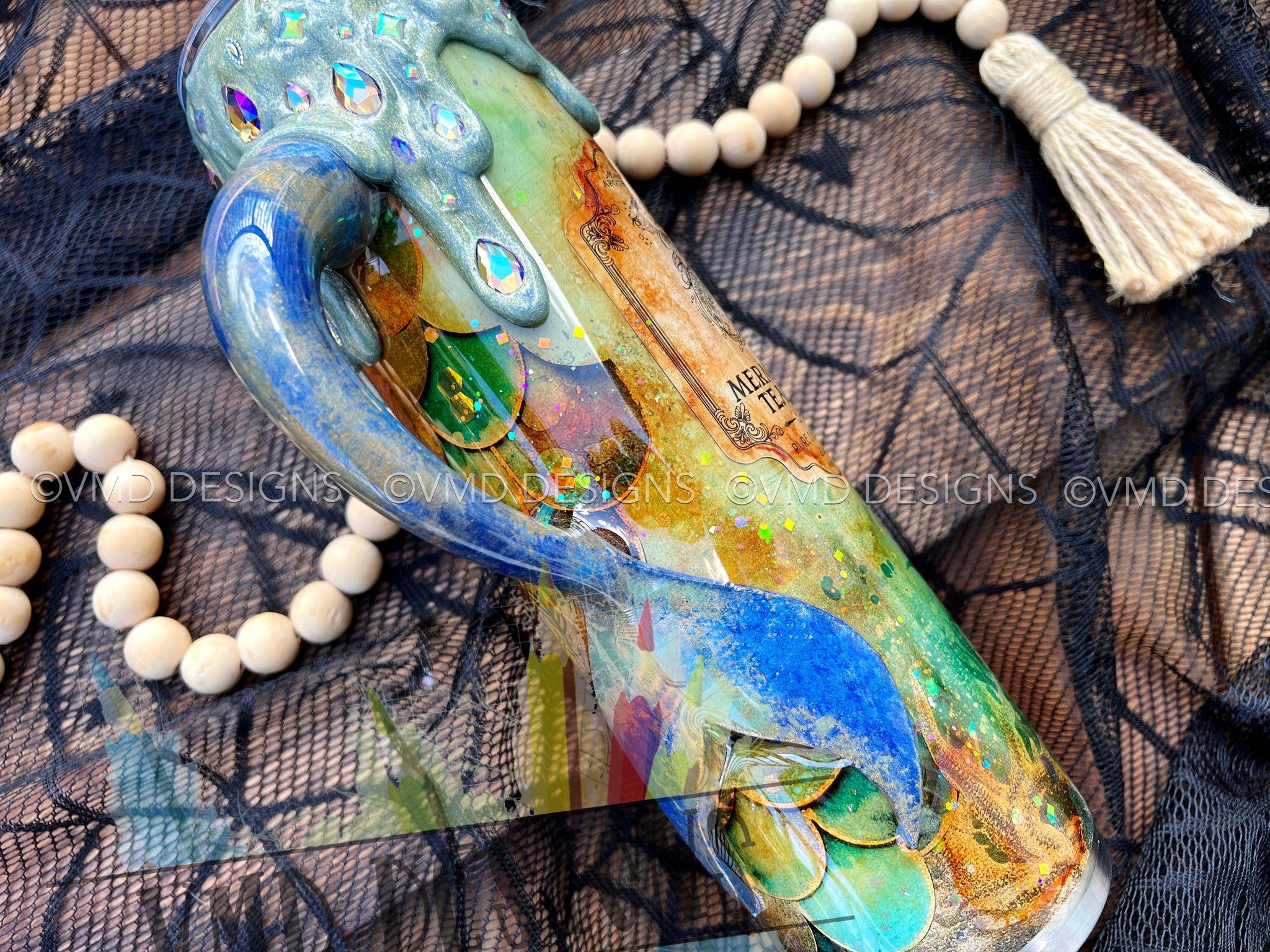 Mermaid Tears Tumbler with Rhinestone Drip and Custom Handle