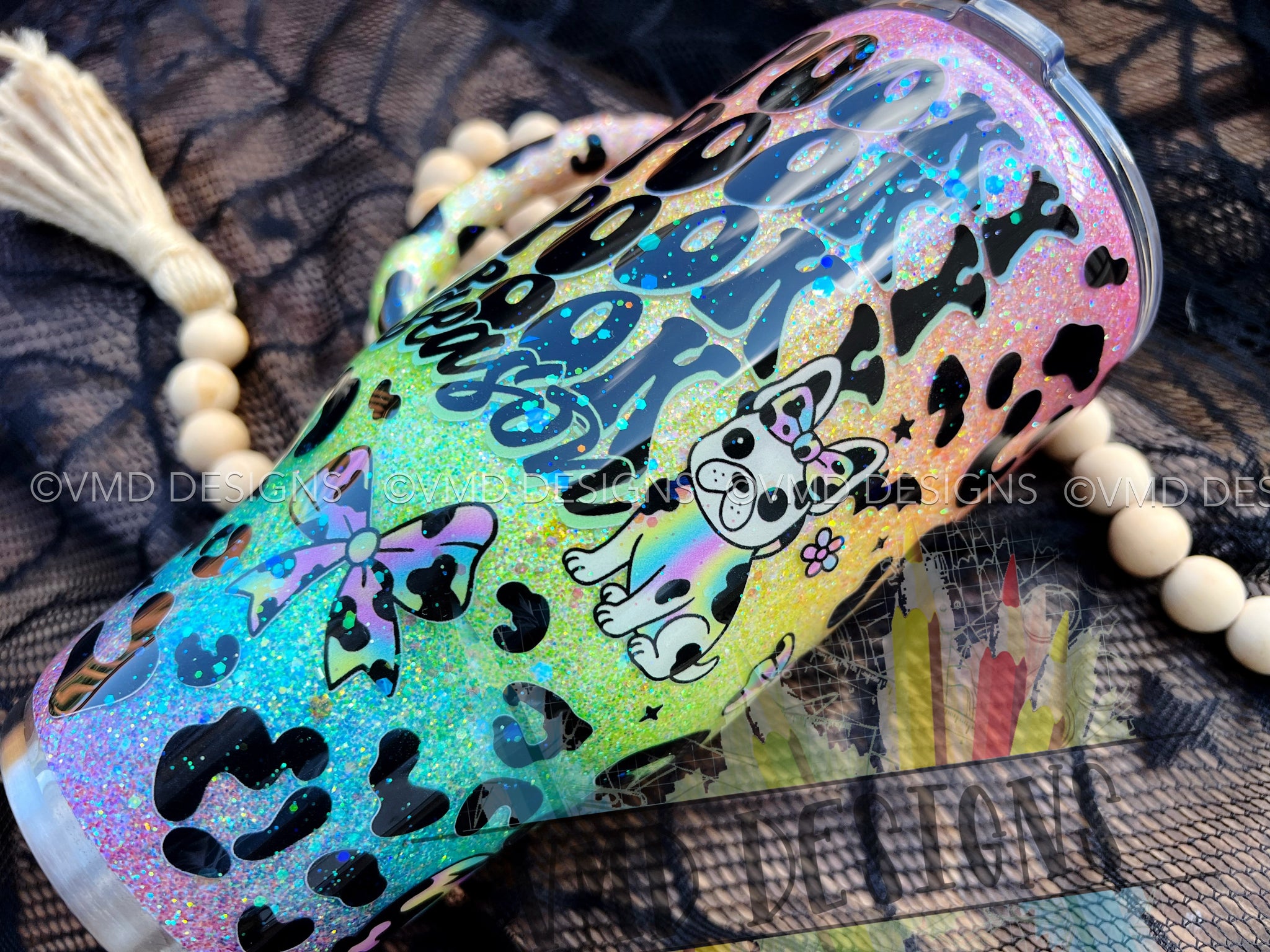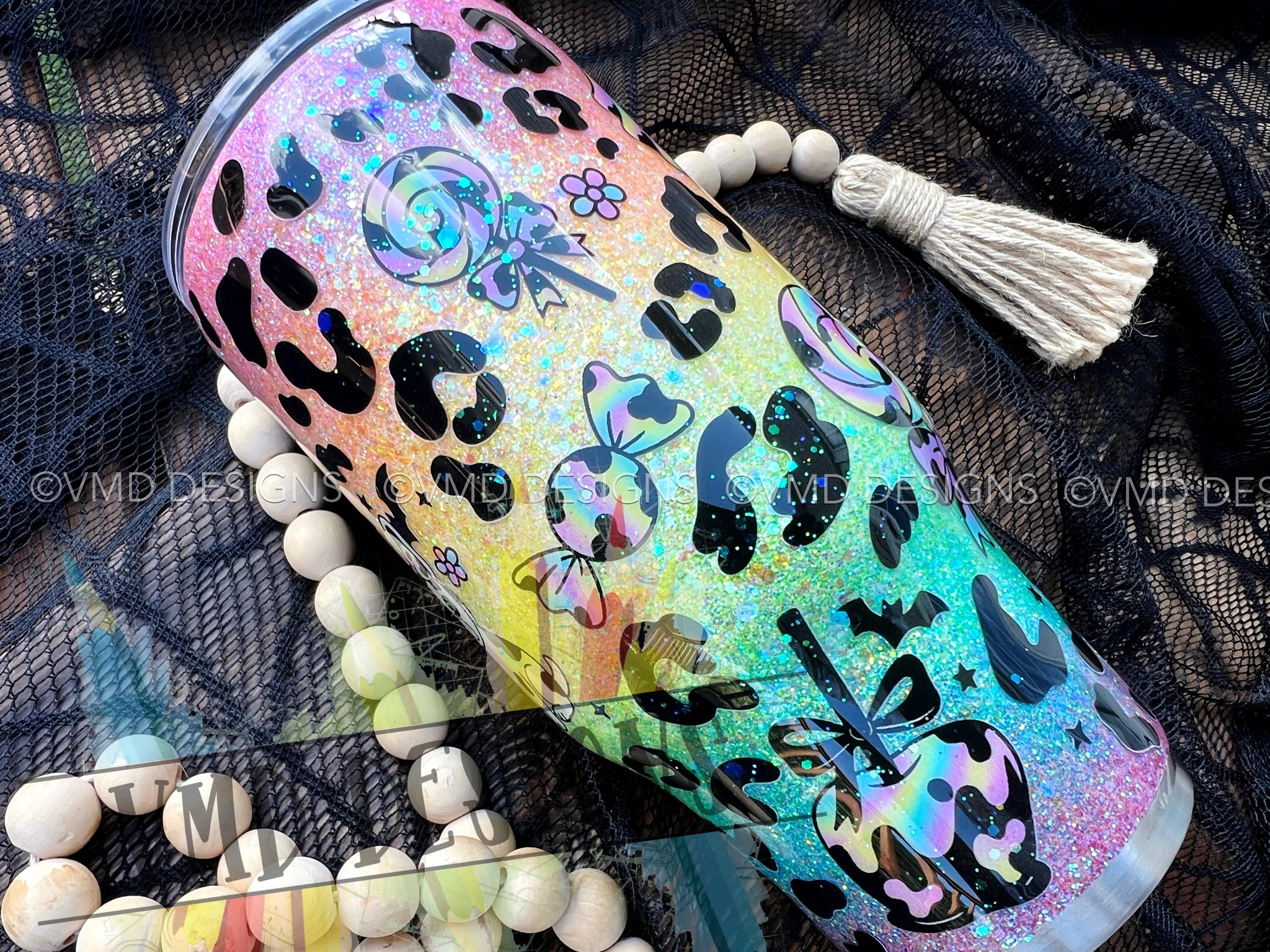 Spooky Season Rainbow Leopard Glitter Tumbler