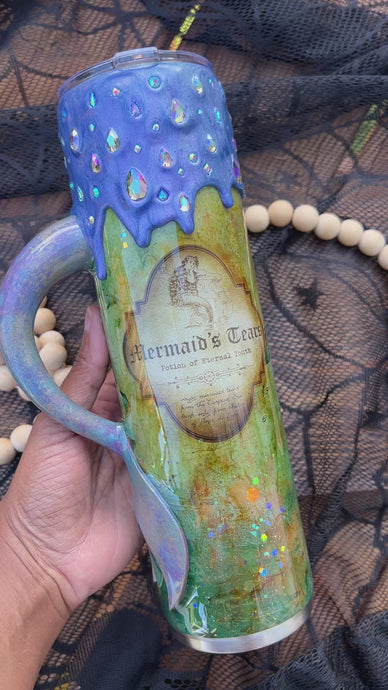 Mermaid Tears Tumbler with Rhinestone Drip and Custom Handle